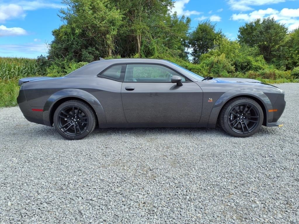 2023 Granite Crystal Metallic Clearcoat Dodge Challenger R/T Scat Pack Widebody SRT HEMI 6.4L V8 MDS RWD This Dodge Challenger has many features and is well equipped including, 18 Speakers Premium Audio System, Adaptive Damping Suspension, Auto High Beam Headlamp Control, Black-Edged Premium Floormats, Brembo 6-Pot Fixed Front Caliper Brakes, Exterior Mirrors w/Heating Element, Flat-Bottom Steering Wheel, GPS Navigation, harman/kardon Audio Group w/Subwoofer, harman/kardon GreenEdge Amp, Heated Front Seats, Heated Steering Wheel, High-Intensity Discharge Headlamps, Performance Shift Indicator, Plus Package, Power Multi-Function Foldaway Mirrors, Power Tilt/Telescope Steering Column, Premium-Stitched Dash Panel, Quick Order Package 24N R/T Scat Pack Widebody, Radio/Driver Seat/Mirrors Memory, Rain Sensitive Windshield Wipers, Rhombi 2-Pc Wheel Center Cap, Scat Pack Logo Nappa/Alcantara Seat, Surround Sound, Technology Group (DISC), Trunk Mounted Subwoofer, Ventilated Front Seats, Wheels: 20" x 11.0" Carbon Black Aluminum, Widebody Competition Suspension, Widebody Fender Flares.