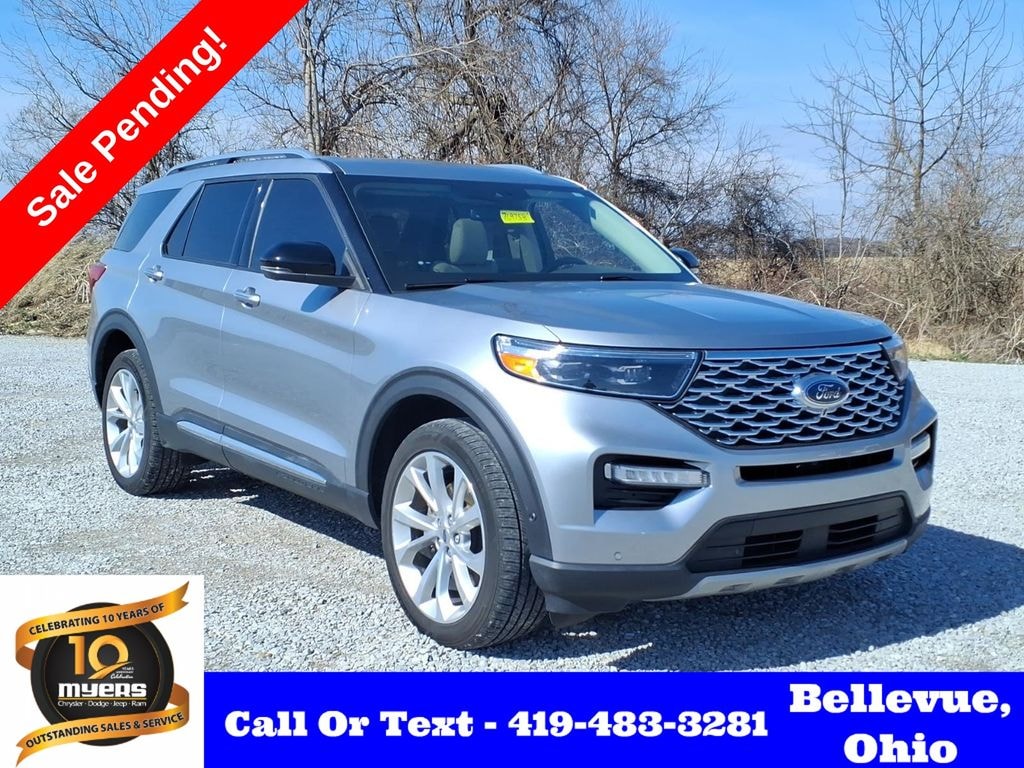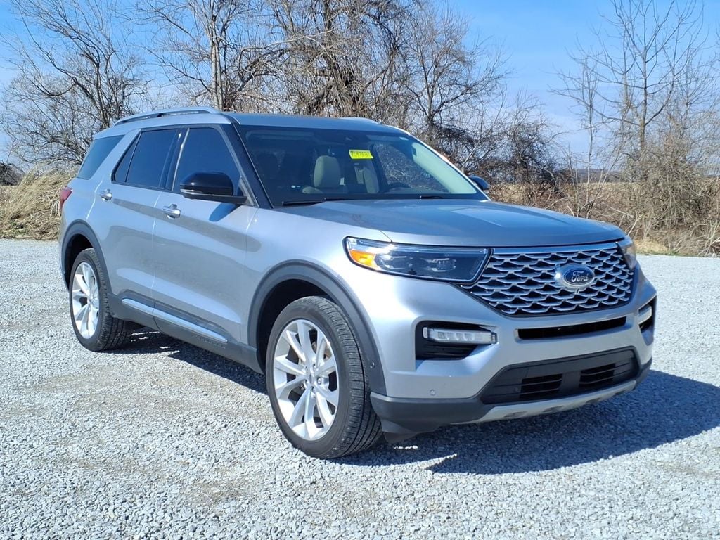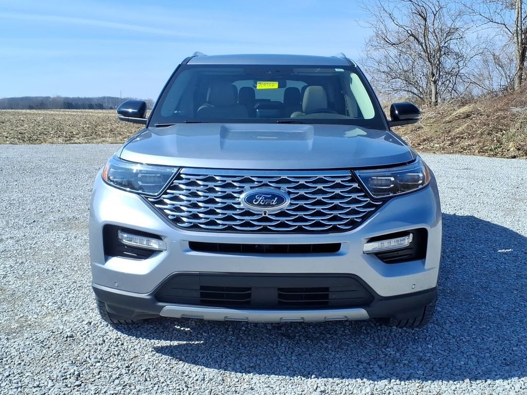 2022 Silver Metallic Ford Explorer Platinum 3.3L Hybrid 4WD This Ford Explorer has many features and is well equipped including, 10.1" LCD Capacitive Portrait Touchscreen, 1st Row Heated Seats, 2 Additional Speakers, Automatic temperature control, Exterior Parking Camera Rear, Front fog lights, Fully automatic headlights, Heated door mirrors, Heated front seats, Heated rear seats, Hybrid Equipment Group 600A, Leather steering wheel, Memory seat, Navigation System, Premium Technology Package, Rear window defroster, Remote keyless entry, Steering wheel memory, Steering wheel mounted audio controls, Turn signal indicator mirrors, Twin Panel Moonroof, Voice-Activated Touchscreen Navigation System, Wheels: 21" Bright Machined-Face Aluminum.