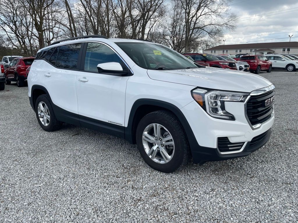 2022 Summit White GMC Terrain SLE 1.5L DOHC AWD This GMC Terrain has many features and is well equipped including, 8-Way Power Driver Seat Adjuster, Bluetooth® For Phone, Driver & Front Passenger Heated Seats, Driver Convenience Package, Dual-Zone Automatic Climate Control, Fully automatic headlights, Power Driver Lumbar Control, Remote Start, Roof-Mounted Luggage Rack Side Rails, Wireless Apple CarPlay/Wireless Android Auto.