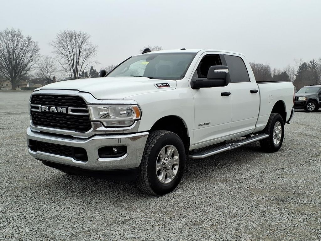 2024 Bright White Clearcoat Ram 2500 Big Horn 6.4L V8 4WD This Ram 2500 has many features and is well equipped including, 2 Way Rear Headrest Seat, 2nd Row In Floor Storage Bins, 4 Way Front Headrests, 40/20/40 Split Bench Seat, 4G LTE Wi-Fi Hot Spot, 8.4" Touchscreen Display, Apple CarPlay, Auto Power-Folding Mirrors, Bed Utility Group, Big Horn IP Badge, Black Exterior Mirrors, Bluetooth Handsfree Phone & Audio, Center Hub, Connectivity - US/Canada, Dual Glove Boxes, Exterior Mirrors Courtesy Lamps, Exterior Mirrors w/Heating Element, Exterior Mirrors w/Supplemental Signals, Foam Bottle Insert (Door Trim Panel), Footwell Courtesy Lamp, For Details, Visit DriveUconnect.com, For More Info, Call 800-643-2112, Forward & Reverse Utility Lights, Front Armrest w/Cupholders, Front Center Seat Cushion Storage, Front Fog Lamps, Front Seat Back Map Pockets, Global Telematics Box Module (TBM), Glove Box Lamp, Google Android Auto, GPS Antenna Input, Integrated Center Stack Radio, Integrated Voice Command w/Bluetooth, Leather Wrapped Steering Wheel, LED Bed Lighting, Level 1 Equipment Group, Locking Lower Glove Box, Manual Adjust 4-Way Front Passenger Seat, Mirror Running Lights, MOPAR Deployable Bed Step, MOPAR Spray In Bedliner, Power 2-Way Driver Lumbar Adjust, Power Adjust 8-Way Driver Seat, Power Adjust Mirrors, Power Adjustable Convex Aux Mirrors, Power Heated Fold Telescope Mirrors, Power Telescoping Mirrors, Premium Cloth 40/20/40 Bench Seat, Protection Group, Radio: Uconnect 5 W w/8.4" Display (A62), Rear 60/40 Folding Seat, Rear Dome w/On/Off Switch Lamp, Remote USB Port - Charge Only, Selectable Tire Fill Alert, SiriusXM Radio Service, SiriusXM Satellite Radio, Steering Wheel Mounted Audio Controls, Storage Tray, Tow Hooks, Wheels: 18" x 8.0" Polished Aluminum.