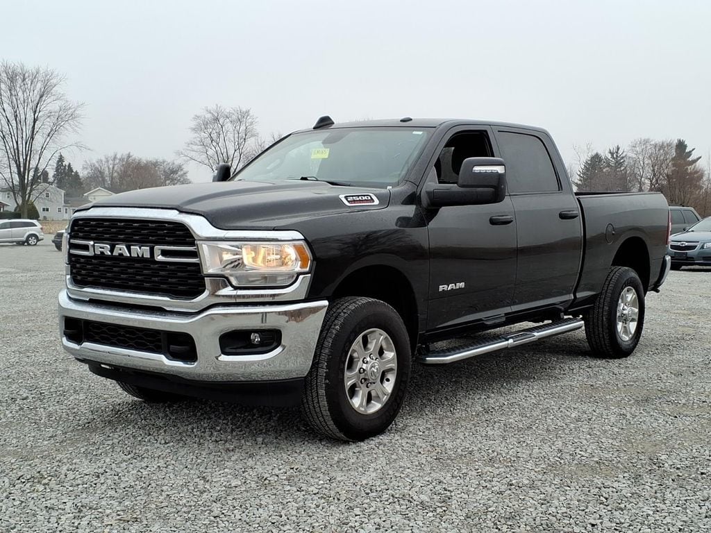 2024 Diamond Black Crystal Pearlcoat Ram 2500 Big Horn 6.4L V8 4WD This Ram 2500 has many features and is well equipped including, 2 Way Rear Headrest Seat, 2nd Row In Floor Storage Bins, 4 Way Front Headrests, 40/20/40 Split Bench Seat, 4G LTE Wi-Fi Hot Spot, 8.4" Touchscreen Display, Apple CarPlay, Auto Power-Folding Mirrors, Bed Utility Group, Big Horn IP Badge, Black Exterior Mirrors, Bluetooth Handsfree Phone & Audio, Center Hub, Connectivity - US/Canada, Dual Glove Boxes, Exterior Mirrors Courtesy Lamps, Exterior Mirrors w/Heating Element, Exterior Mirrors w/Supplemental Signals, Foam Bottle Insert (Door Trim Panel), Footwell Courtesy Lamp, For Details, Visit DriveUconnect.com, For More Info, Call 800-643-2112, Forward & Reverse Utility Lights, Front Armrest w/Cupholders, Front Center Seat Cushion Storage, Front Fog Lamps, Front Seat Back Map Pockets, Global Telematics Box Module (TBM), Glove Box Lamp, Google Android Auto, GPS Antenna Input, Integrated Center Stack Radio, Integrated Voice Command w/Bluetooth, Leather Wrapped Steering Wheel, LED Bed Lighting, Level 1 Equipment Group, Locking Lower Glove Box, Manual Adjust 4-Way Front Passenger Seat, Mirror Running Lights, MOPAR Deployable Bed Step, MOPAR Spray In Bedliner, Power 2-Way Driver Lumbar Adjust, Power Adjust 8-Way Driver Seat, Power Adjust Mirrors, Power Adjustable Convex Aux Mirrors, Power Heated Fold Telescope Mirrors, Power Telescoping Mirrors, Premium Cloth 40/20/40 Bench Seat, Protection Group, Radio: Uconnect 5 W w/8.4" Display (A62), Rear 60/40 Folding Seat, Rear Dome w/On/Off Switch Lamp, Remote USB Port - Charge Only, Selectable Tire Fill Alert, SiriusXM Radio Service, SiriusXM Satellite Radio, Steering Wheel Mounted Audio Controls, Storage Tray, Tow Hooks, Wheels: 18" x 8.0" Polished Aluminum.